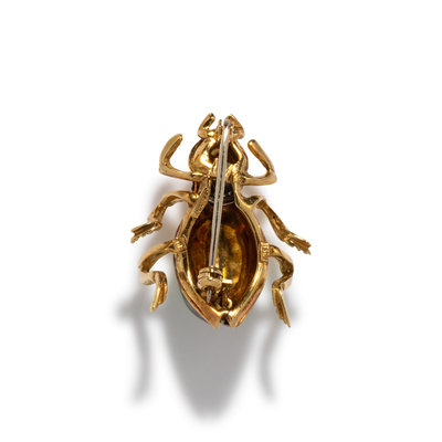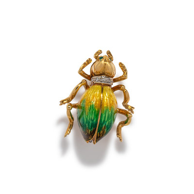 CARTIER, YELLOW GOLD, DIAMOND AND ENAMEL BEETLE BROOCH