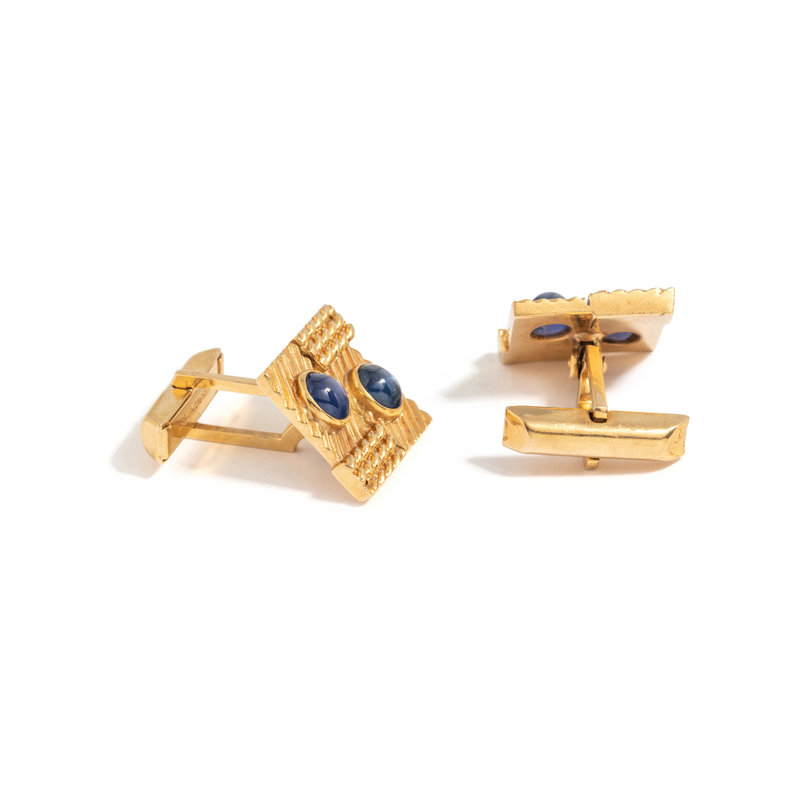 TIFFANY & CO., YELLOW GOLD AND STAR SAPPHIRE CUFFLINKS