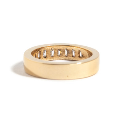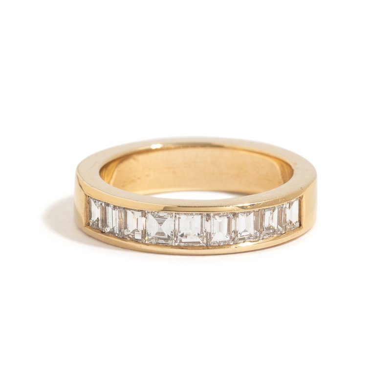 Containing nine baguette cut diamonds weighing approximately 1.00 carat total. Ring size 5.
