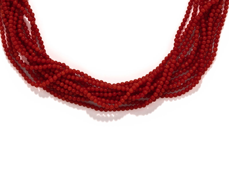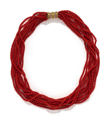 YELLOW GOLD AND CORAL TORSADE NECKLACE