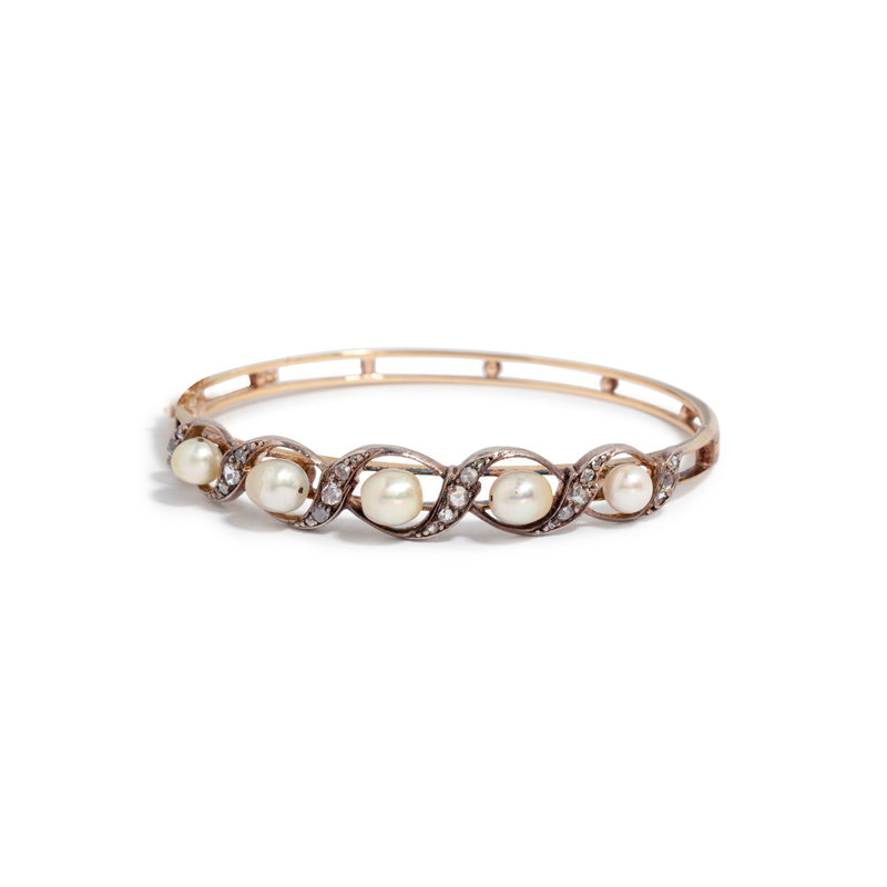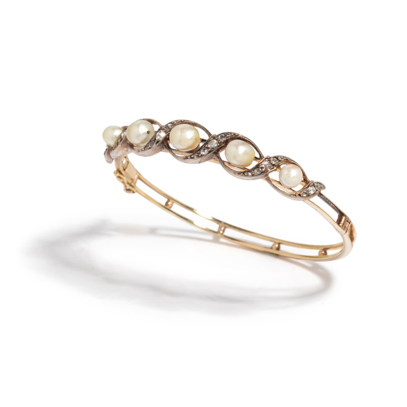 ANTIQUE, PEARL AND DIAMOND BANGLE BRACELET