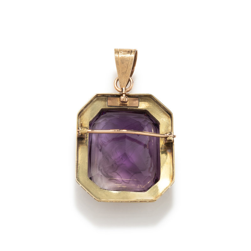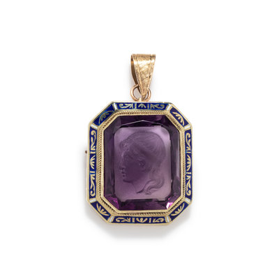 AMETHYST INTAGLIO AND ENAMEL PENDANT/BROOCH