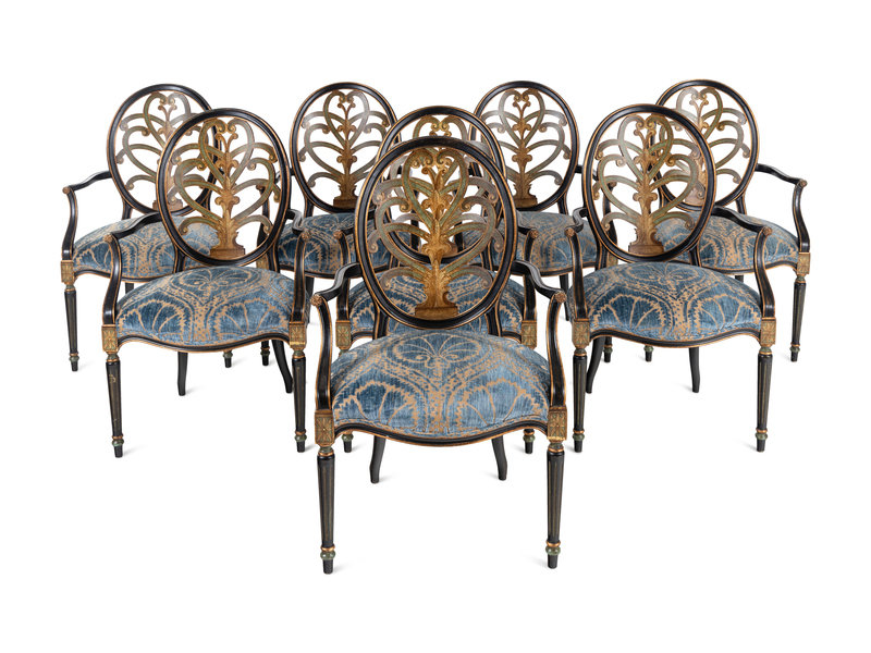 A Set of Eight Galimberti Lino Italian Painted Dining Chairs