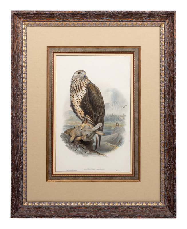 Lithograph with hand-coloring, ca 19th-century, 20 x 12 1/2-inches, matted and framed (unexamined out of frame).