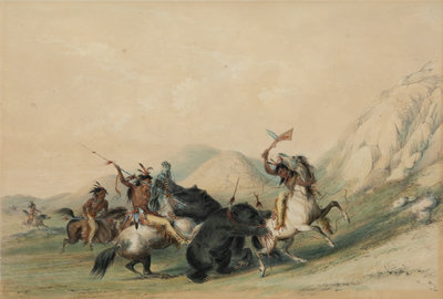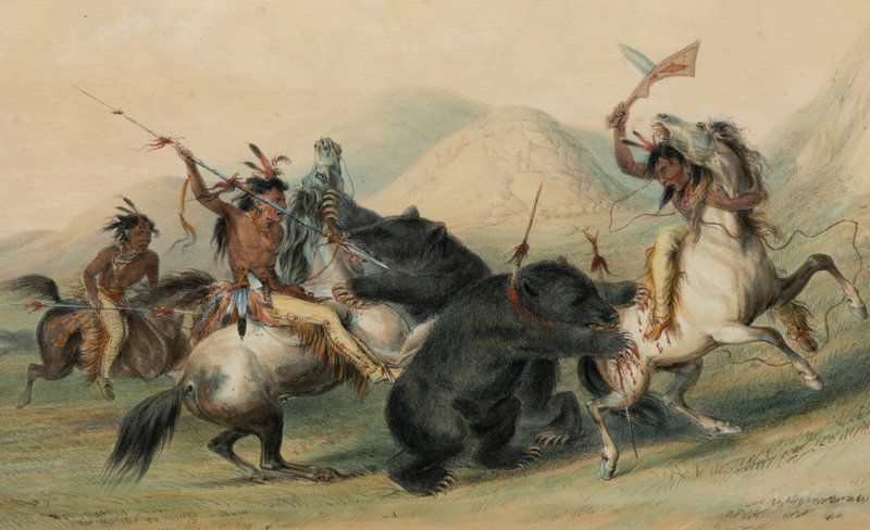 Lithograph with hand-coloring, ca 19th-century, visible image 12 x 17 1/2 in, some toning and minor spotting, matted and framed (unexamined out of frame).