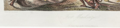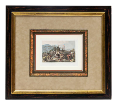 Engraving with hand-coloring, ca 19th-century, 5 1/2 x 7 1/2-inches, matted and framed (unexamined out of frame).
