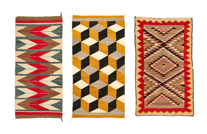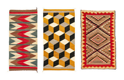 onother having outlined serrations; edges have been bound, 68 x 39 inches.