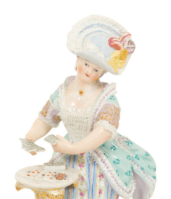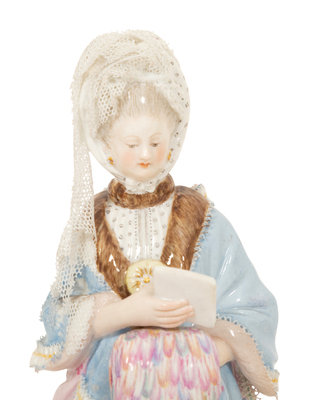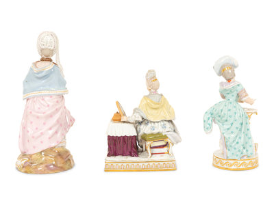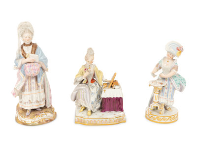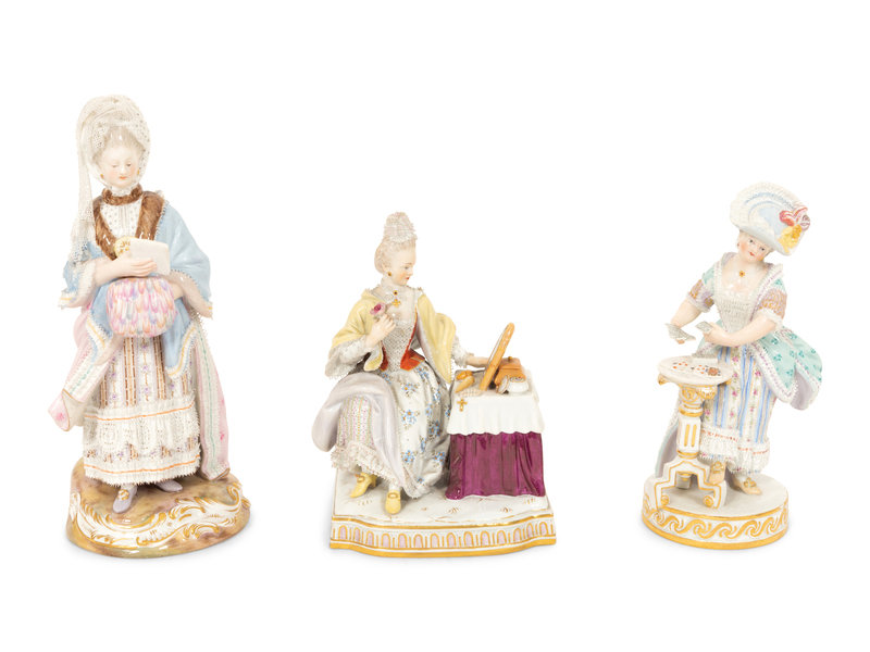 Three Meissen Porcelain Figures of Ladies in Lacy Dresses