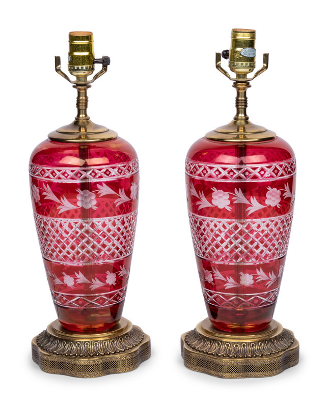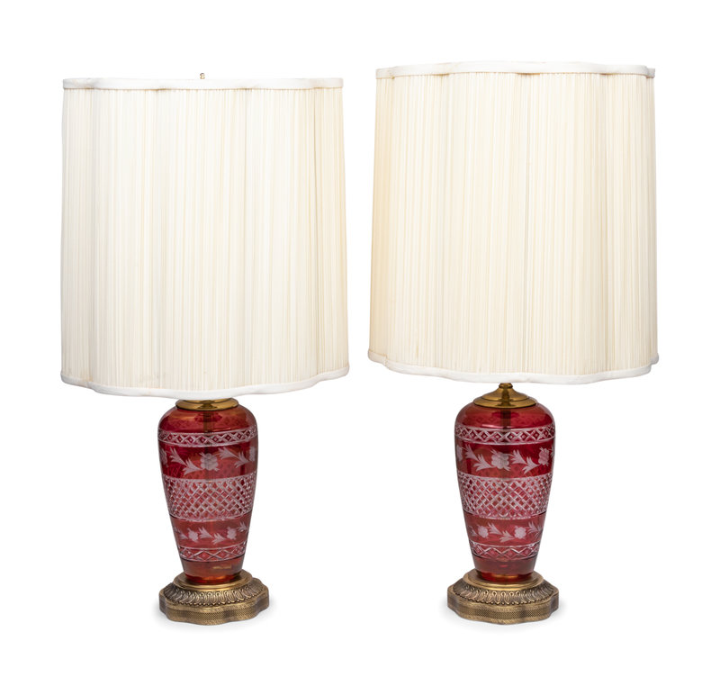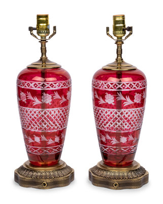A Pair of Bohemian Glass Vases Mounted as Lamps
