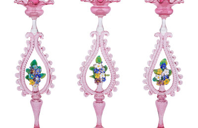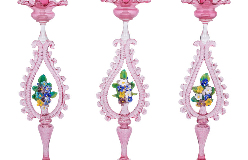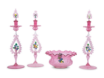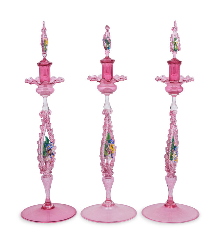 Height of candlesticks 20 1/2 inches. Bowl height 5 1/2 x diameter 11 inches.