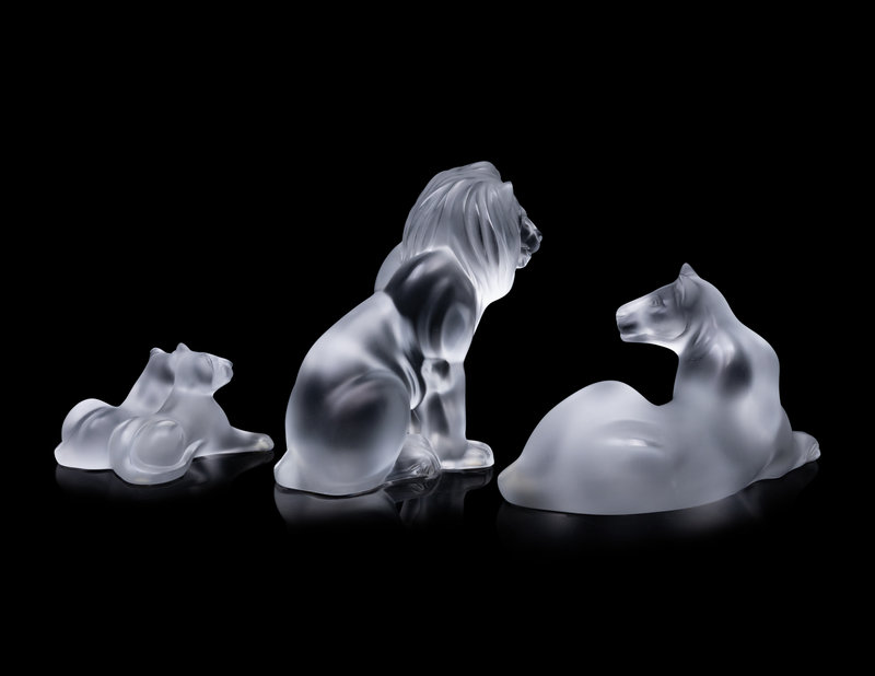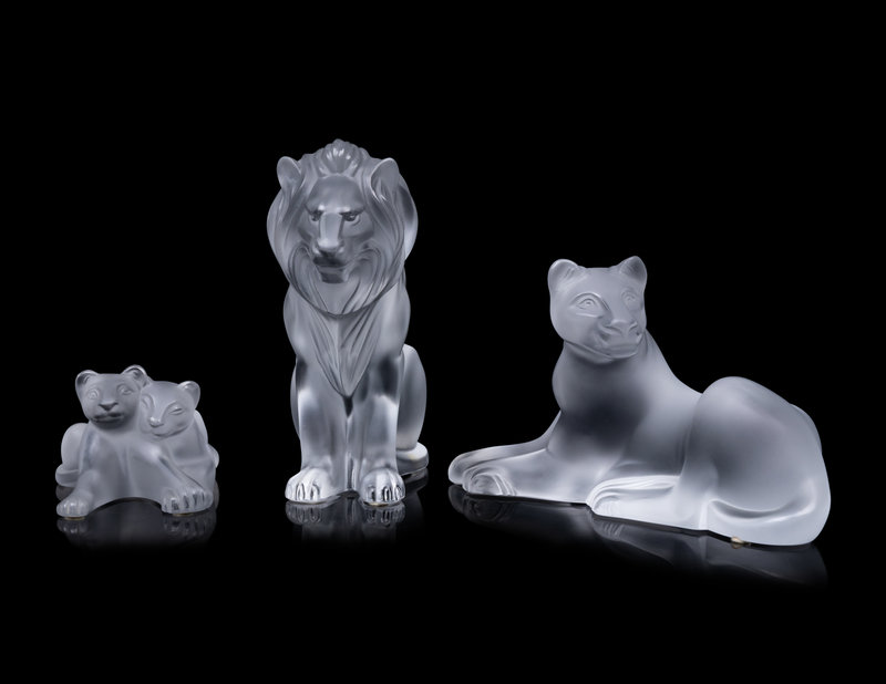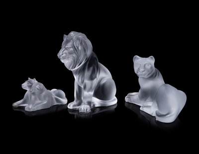 Three Lalique Lion Figurines