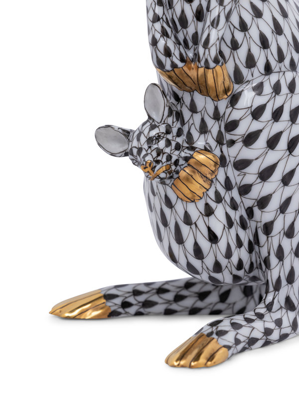 in black fishnet pattern, with Herend marking to underside.