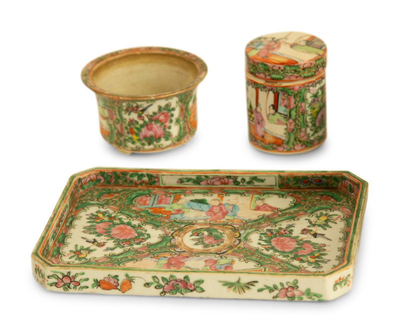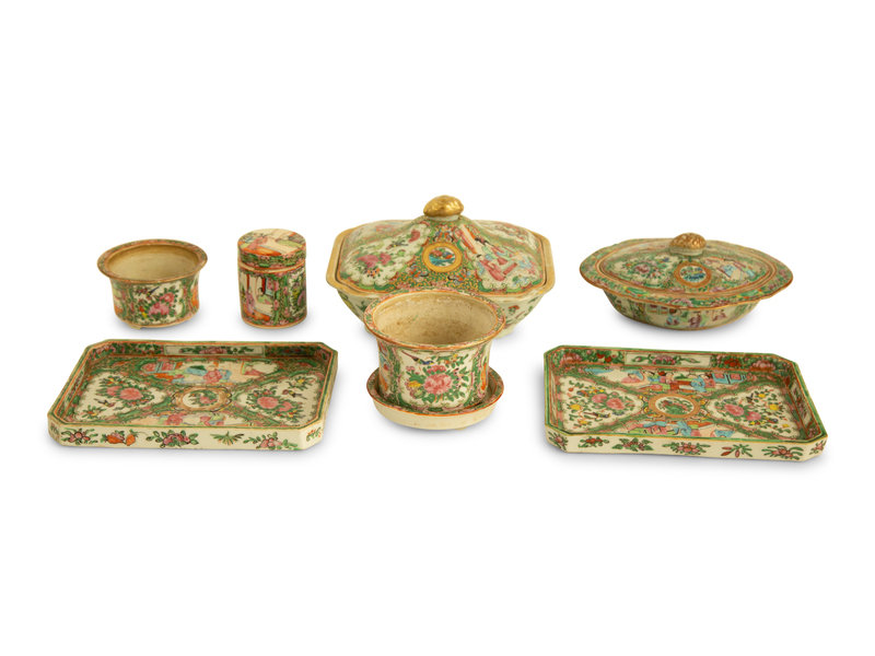 A Collection of Chinese Rose Medallion Porcelain Table Articles