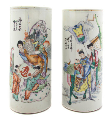 A Pair of Chinese Porcelain Cylindrical Hat Stands