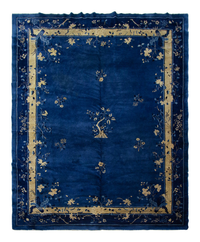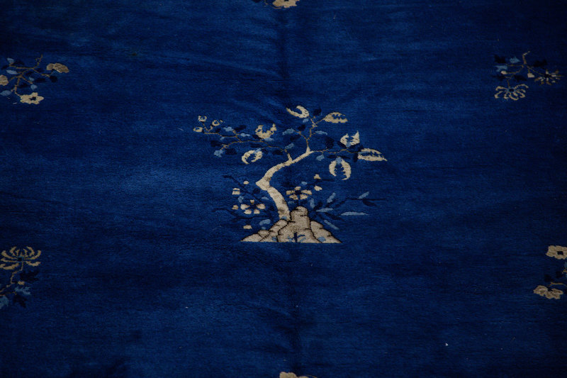 A Chinese Blue and White Wool Rug