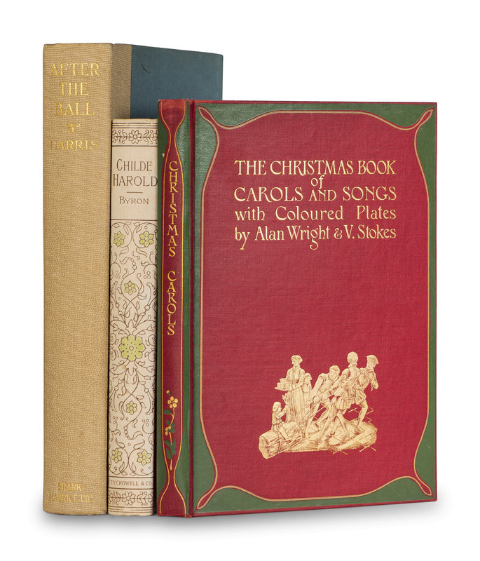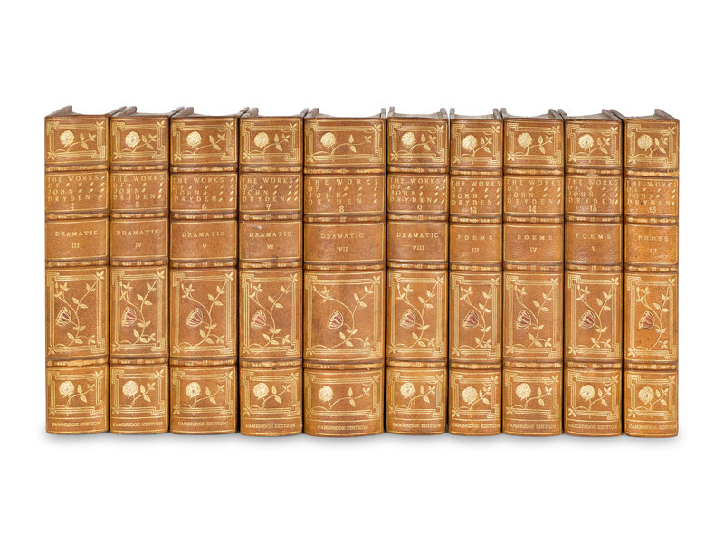 DRYDEN, John. The Works. NY: Croscup & Sterling Company, n.d. 10 volumes (of 18, vols., lacking vols. I-II of Drama, vols. I-II of Poems, and vol. I-II of Prose and 2 others). Contemporary half green crushed levant gilt. LIMITED EDITION, number 13 of 26 copies for American of the "Cambridge edition." -- Winter Poems by Favorite American Poets. Boston: Houghton, Mifflin and Company, [1870]. -- [Breviary Treasures]. Boston: Privately printed by Nathan Haskell Dole, 1903. 11 volumes. LIMITED EDITION, number 266 of 550 copies on French hand-made paper of the "Doric edition." -- SMITH, F. Hopkinson. In Dickens's London. NY, 1914. FIRST EDITION. -- COLE, Timothy. Art by the Way. NY: William Edwin Rudge, 1925. Original printed dust jacket. -- HARRIS, Charles K. After the Ball Forty Years of Melody an Autobiography. NY., 1926. FIRST EDITION, LIMITED EDITION, number 22 of 550 copies of "Edition de Luxe," SIGNED BY HARRIS. -- ANSON, W.S.W., editor. The Christmas Book of Carols and Songs. L et al: George Routledge & Sons, Limited, n.d. Glassine. -- WHISTLER, James McNeill. Modern Masters of Etching James McNeill Whistler... Number 13. Malcolm C. Salaman, introduction. L et al: The Studio Ltd. et al, 1927. -- And 20 others. Together, 28 works in 60 volumes, various sizes, most illustrated, most in original bindings, condition generally good. Complete list available upon request.