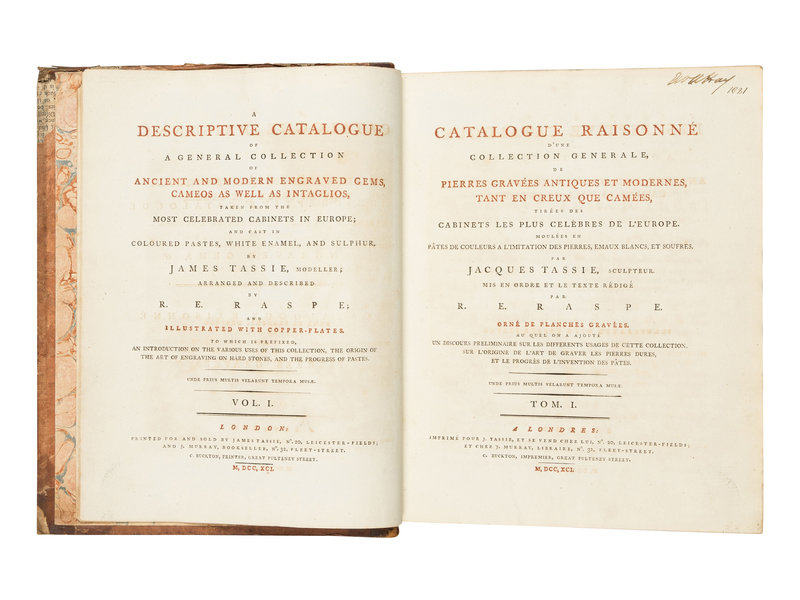 FIRST EDITION, with text in English and French, describing nearly 16,000 works by famed Scottish gem engraver Tassie.