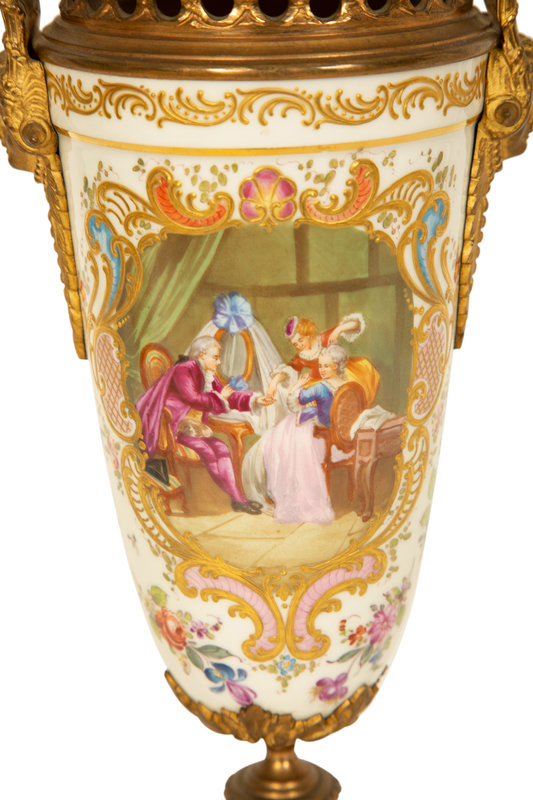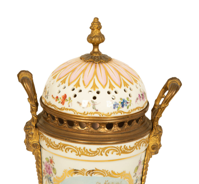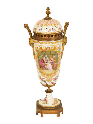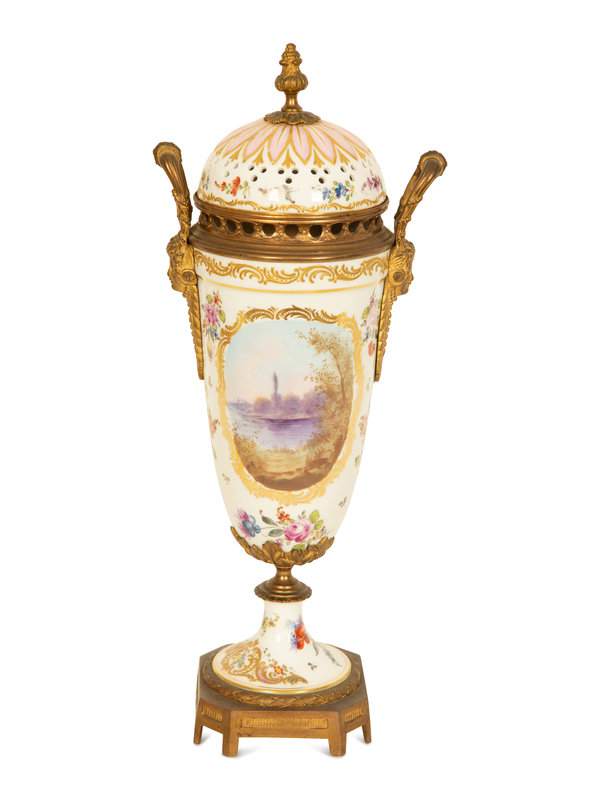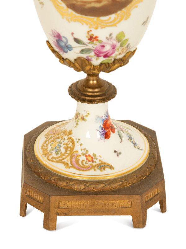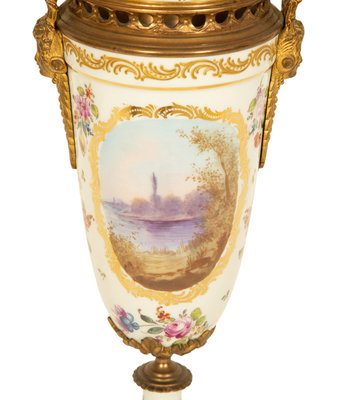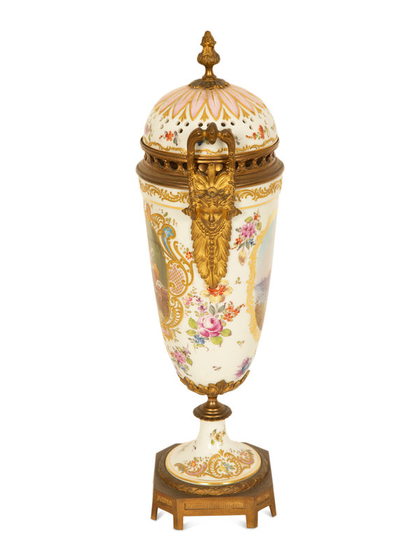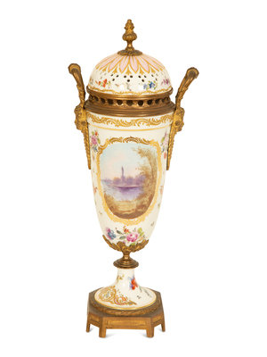 A Sevres Style Gilt Metal Mounted Porcelain Urn