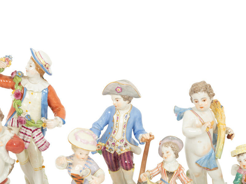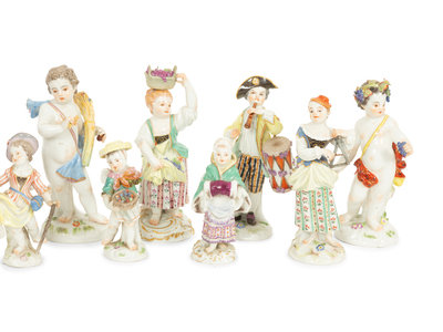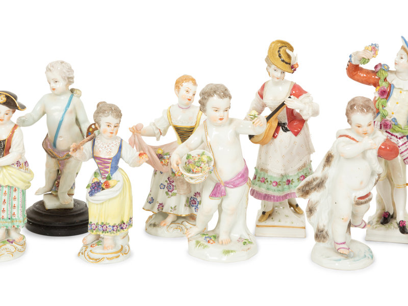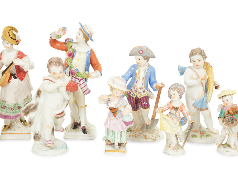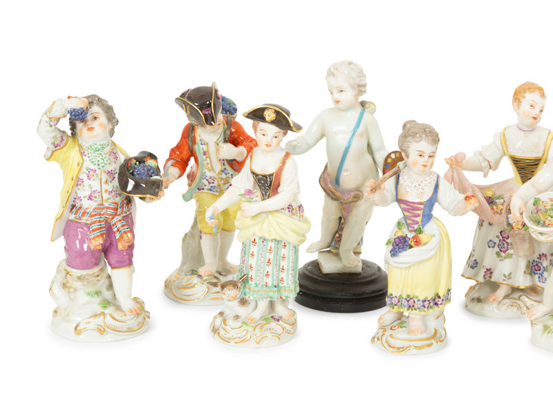 including examples marked for Meissen, Dresden, Berlin (K.P.M), an unmarked examples; 20 items total.