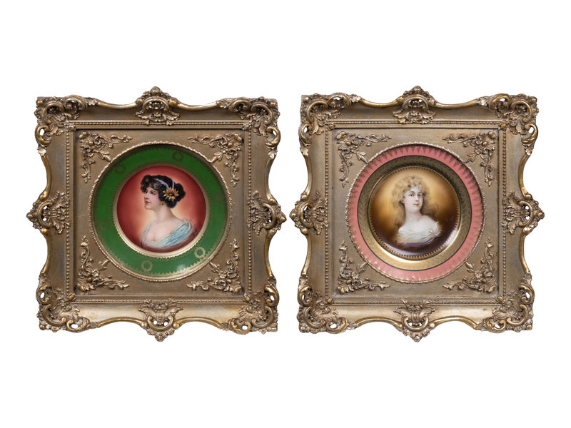 A Pair of Vienna Porcelain Cabinet Plates in Giltwood Frames