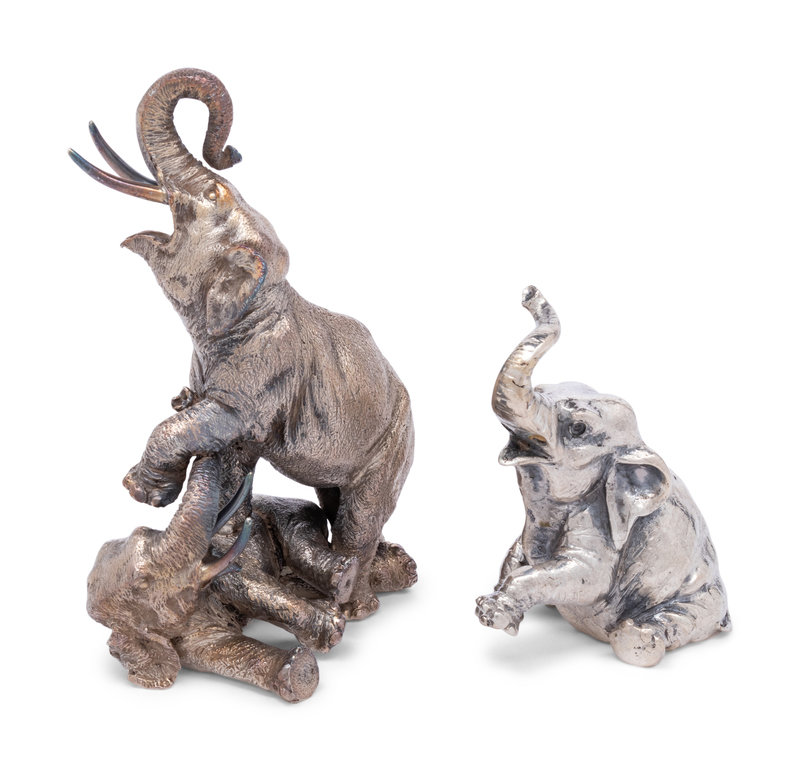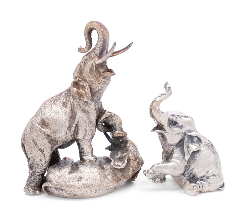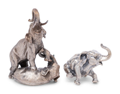 Two Italian Silvered Metal Elephant Figures