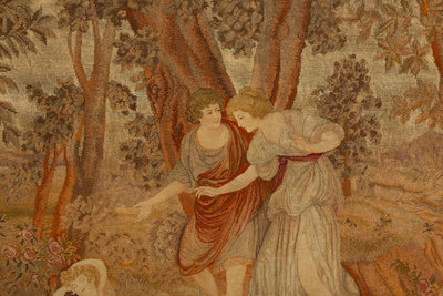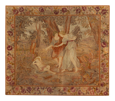 A Tapestry Panel Depicting a Couple Observing a Sleeping Putto