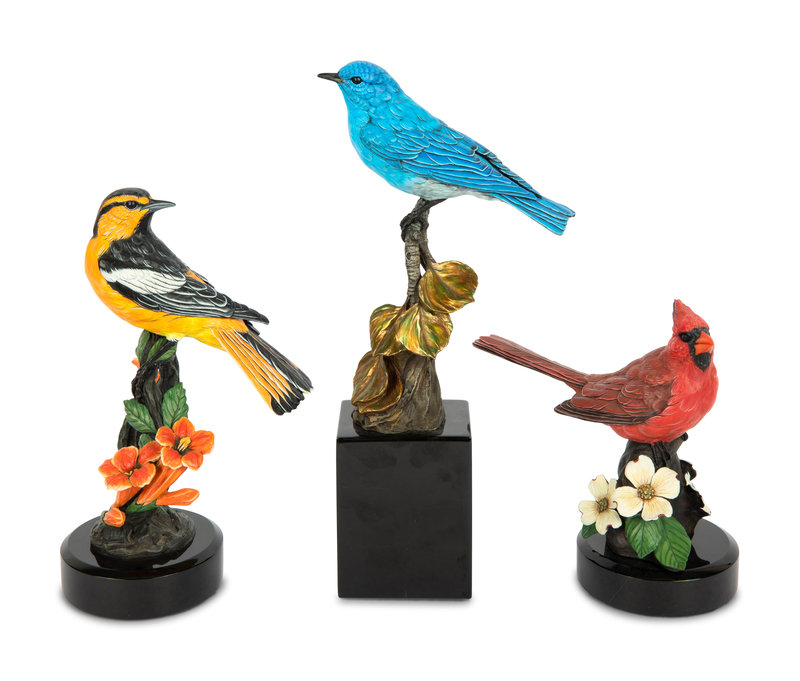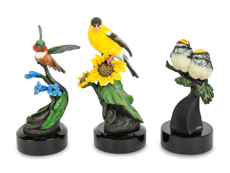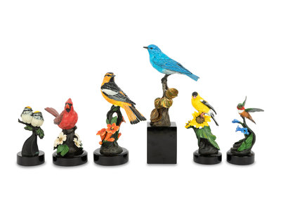 A Group of Six Bronze Bird Sculptures