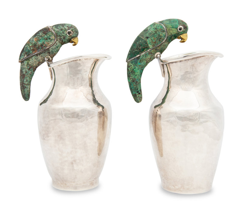 with applied parrot handles and Los Castillo Plateado markings on the undersides.