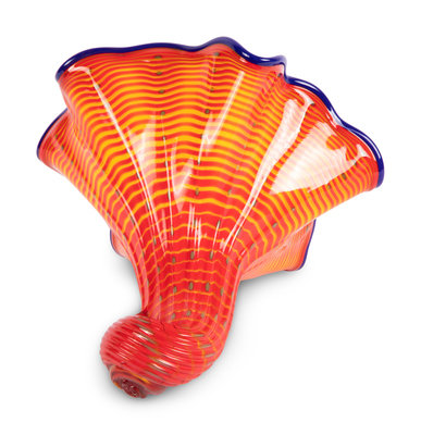 A Red and Yellow Persian Art Glass Vase in the Manner of Chihuly