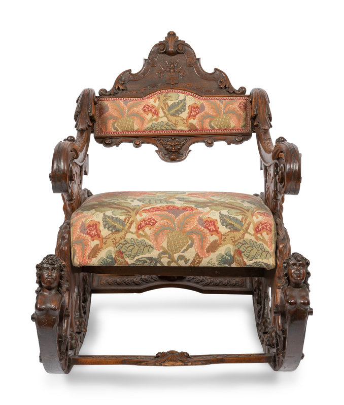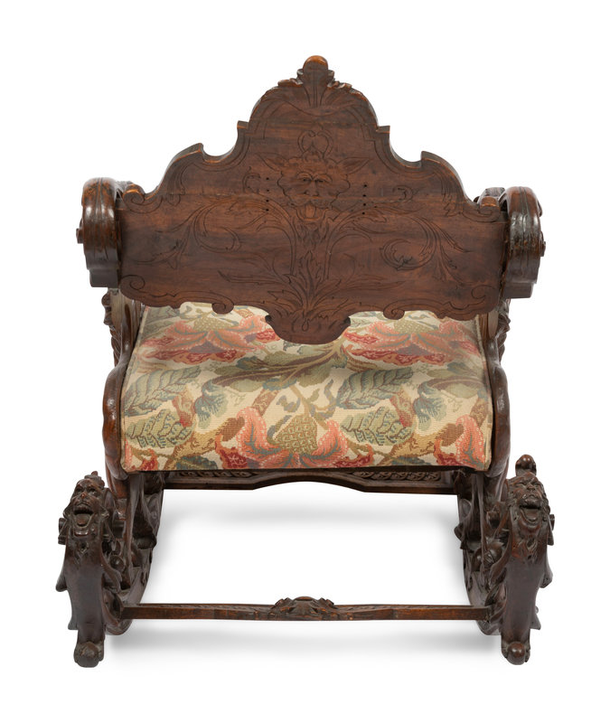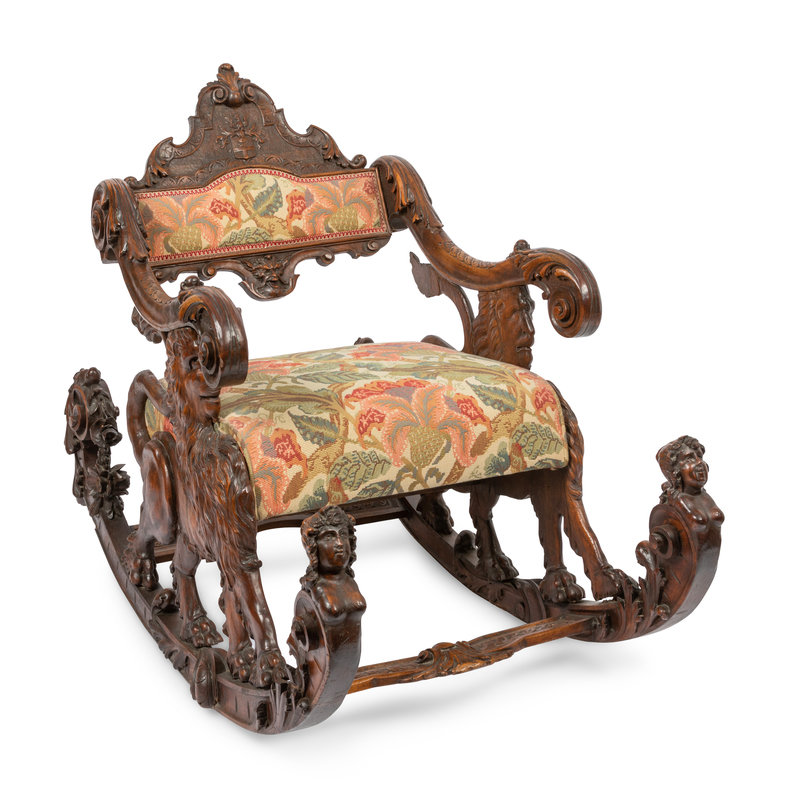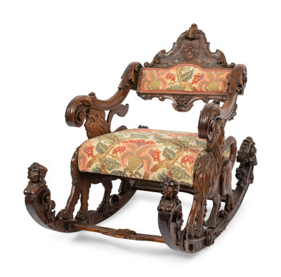 An Italian Carved Walnut Fantasy Rocking Chair