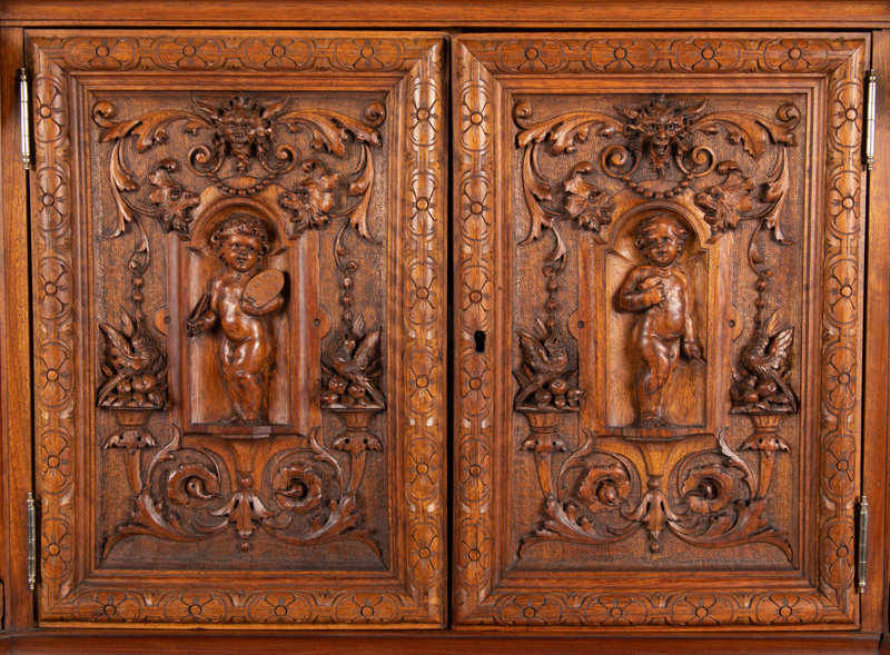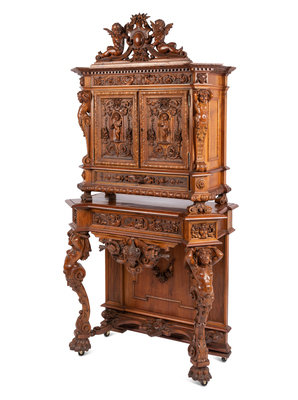 A Renaissance Revival Carved Walnut Cabinet In the Manner of Alexander Roux