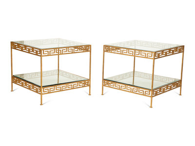 A Pair of Ebanista Jacques Stacking Gilt Decorated Wrought Iron Side Tables