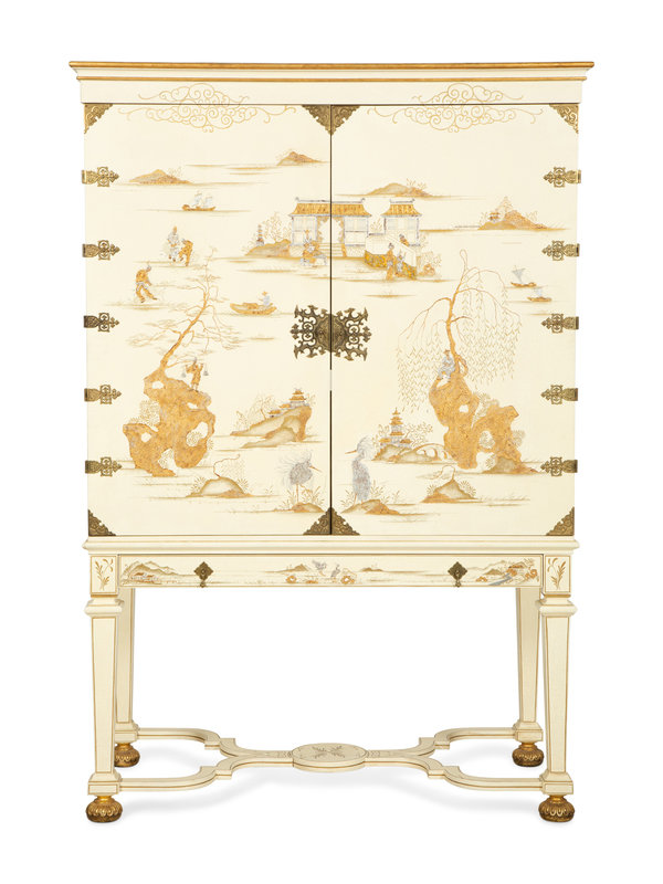 A Dessin Fournir White Lacquer Griswold Cabinet