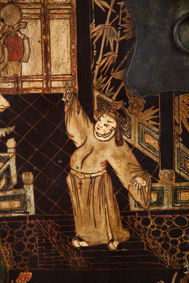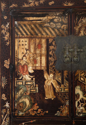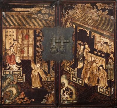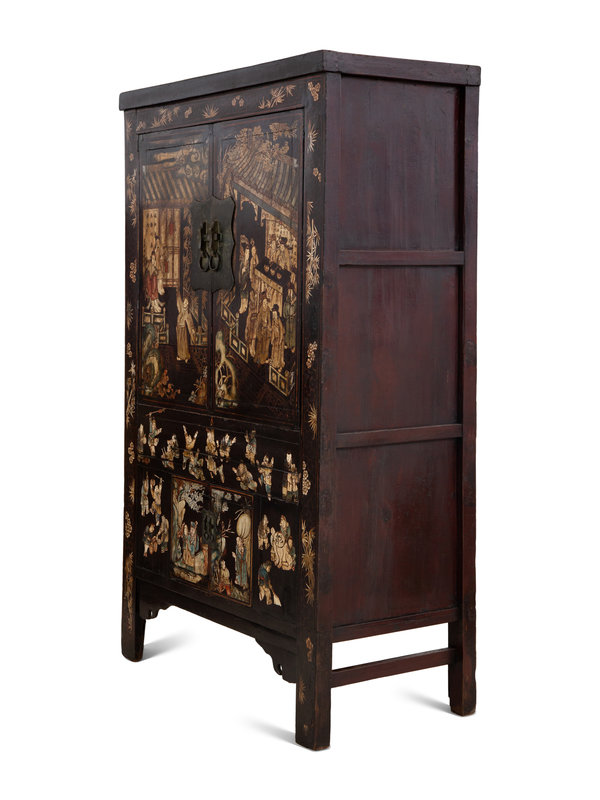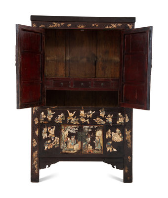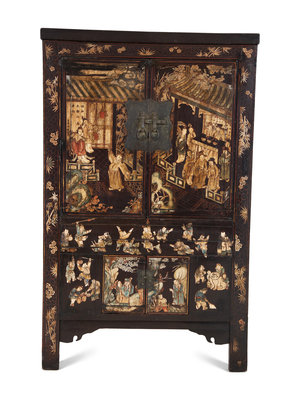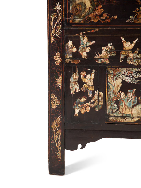 A Chinese Black Lacquer and Polychrome Scholar's Cabinet