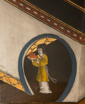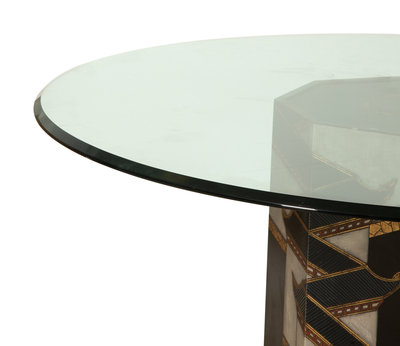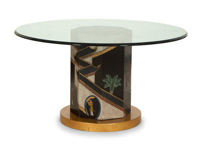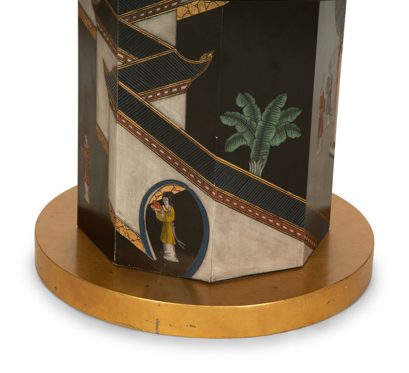 A Chinoiserie Decorated Pedestal Table with Glass Top