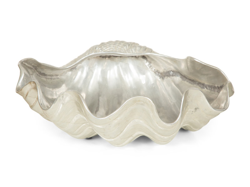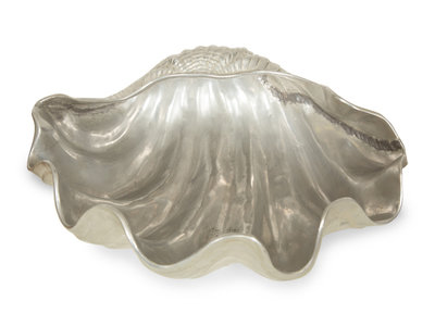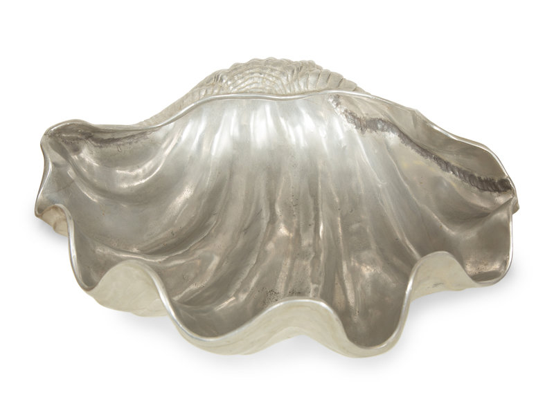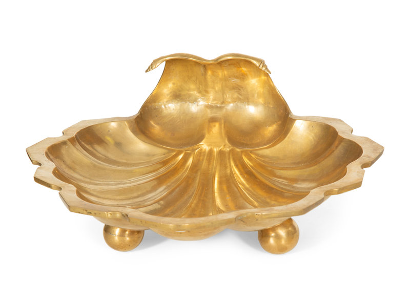 comprising a brass footed dish, an Arthur Court aluminium bowl and a Wilton clam shell bowl.