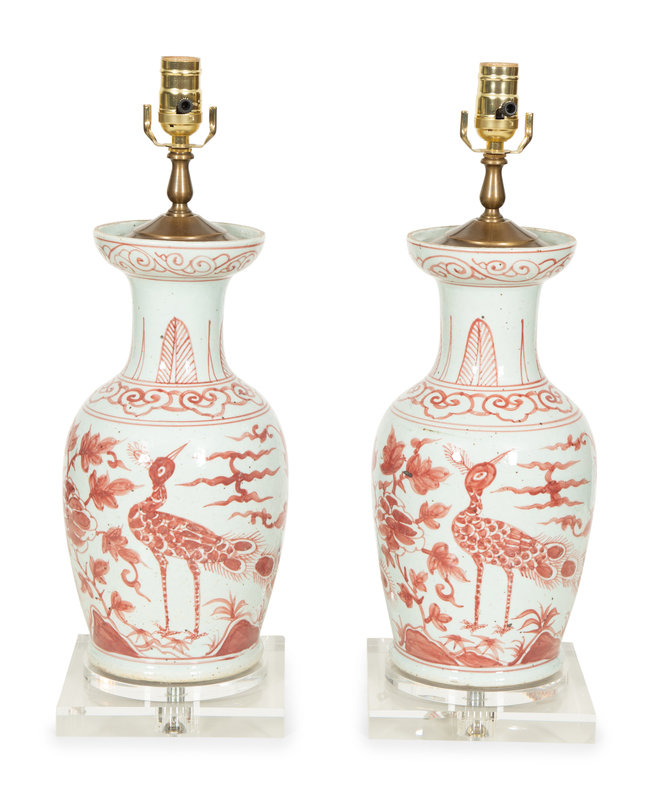 A Pair of Chinese Export Porcelain Vases Mounted as Lamps