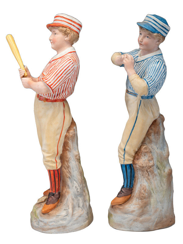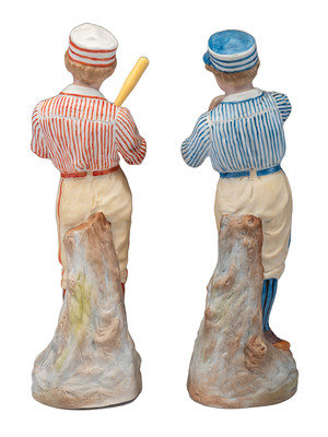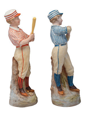 A Pair of German Bisque Porcelain Baseball Figures