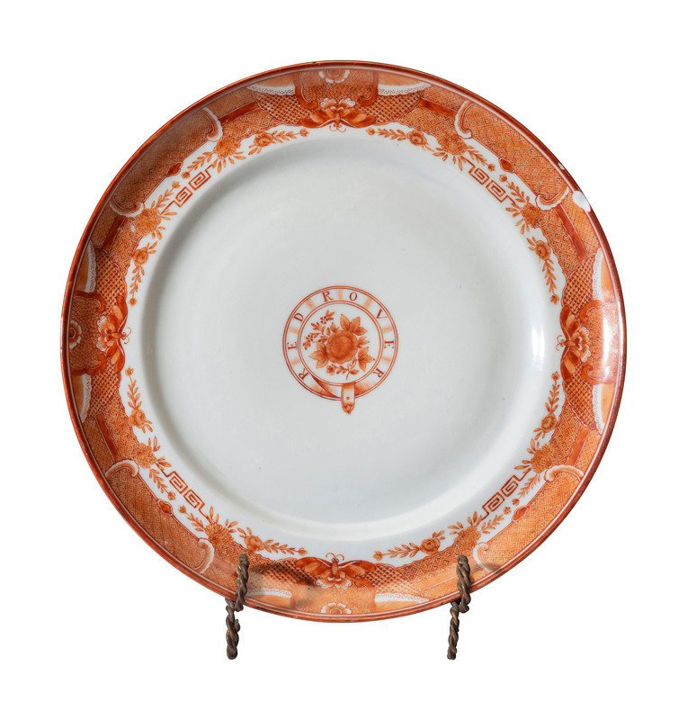 with Red Rover ship name in central peony medallion.