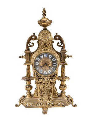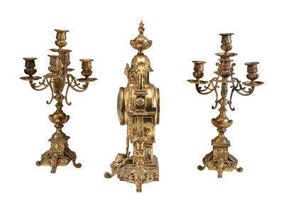 A Continental Gilt Bronze Three-Piece Clock Garniture