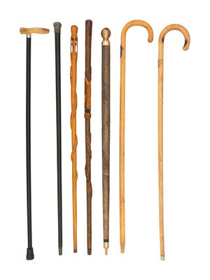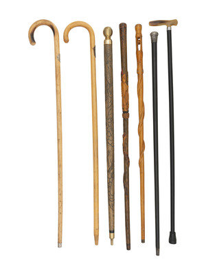 comprising two Chicago World's Fair canes, a silver-topped cane, a folk art puzzle cane, and three others.