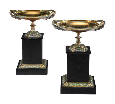 A Pair of Neoclassical Bronze and Marble Tazze