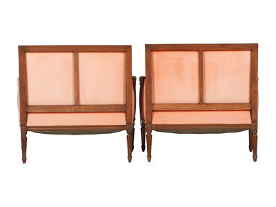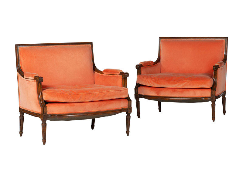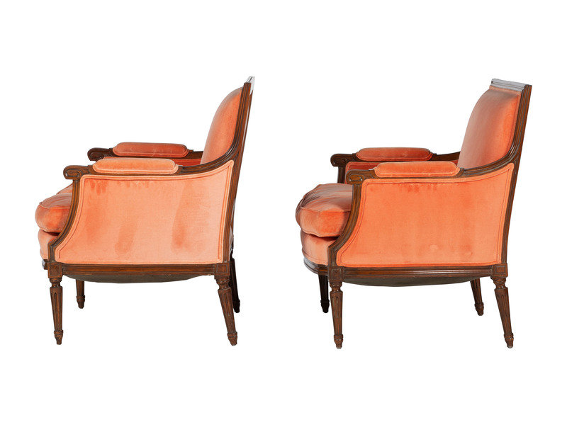A Pair of Louis XVI Style Walnut Bergeres
