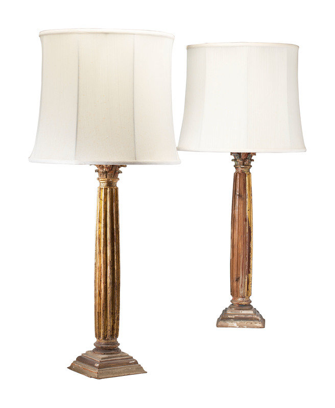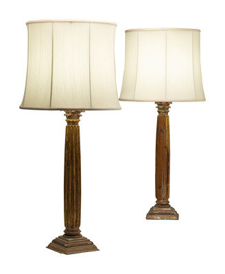 A Pair of Italian Carved and Parcel-Gilt Columnar Lamps