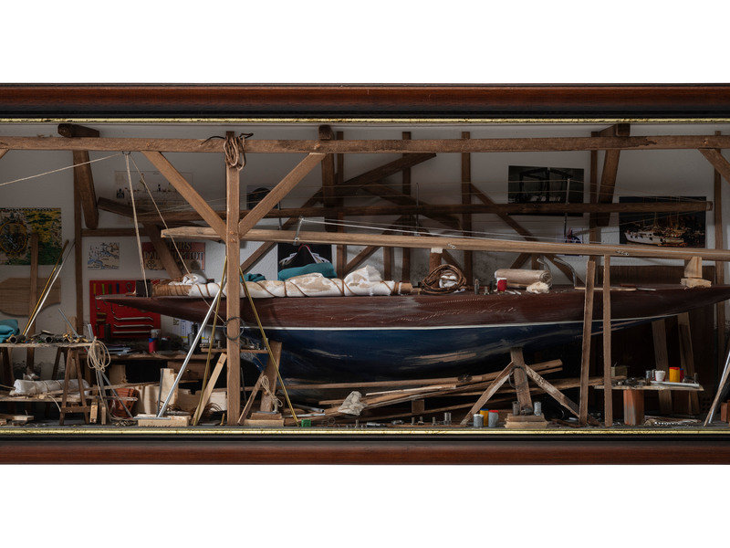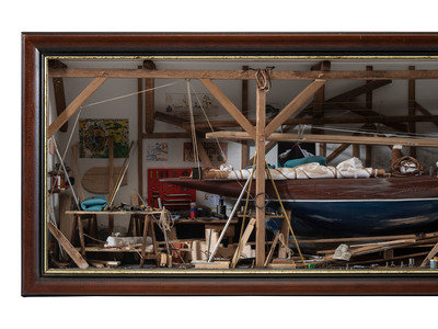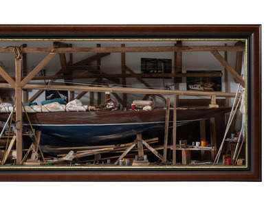 A French Cased Boat Building Diorama