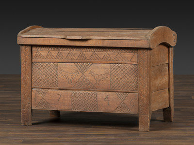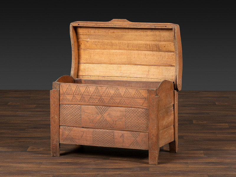 A Continental Chip and Bird Carved Dome-Top Blanket Chest