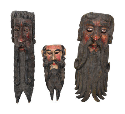 Three Mexican Painted Wood Festival Masks