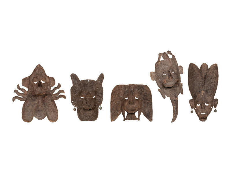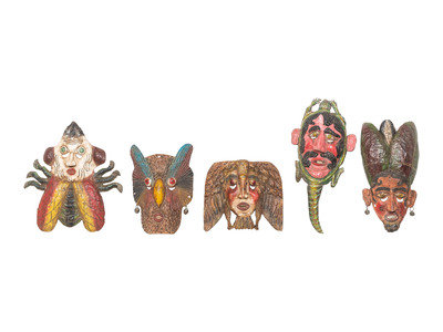 Five Mexican Copper Festival Masks