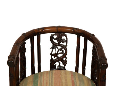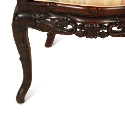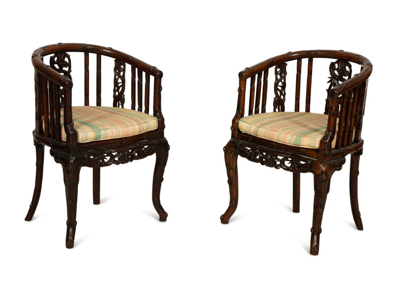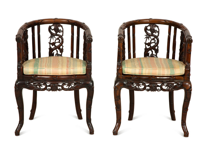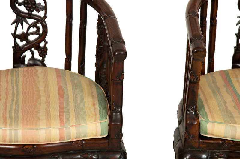 A Pair of Chinese Hongmu Horseshoe Back Carved Armchairs