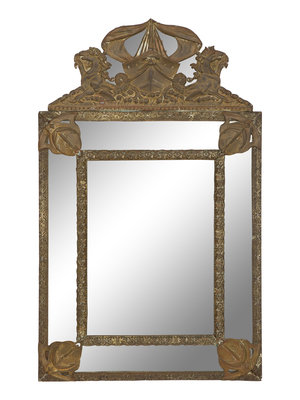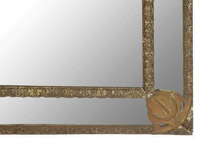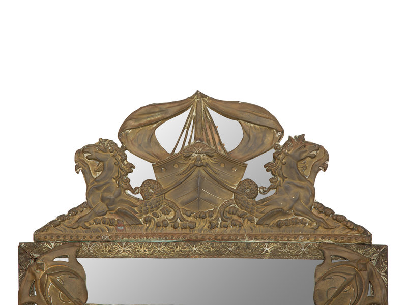 A Dutch Chased Brass Cushion Mirror with Nautical Motif